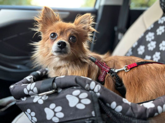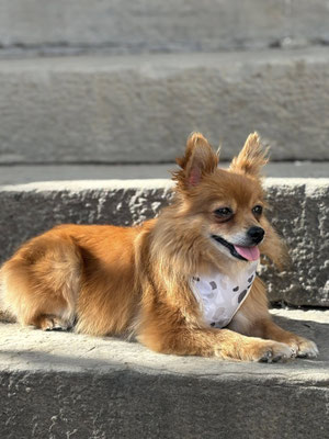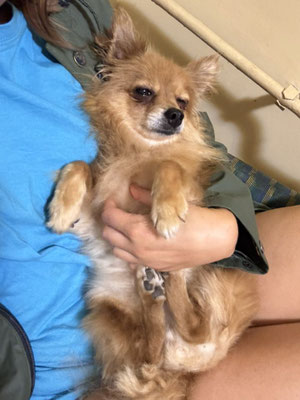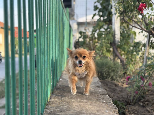 Flora scheint eine Mischung aus Pomeranian und Chihuahua zu sein. Anfangs war sie extrem gestresst, aber mit einem sanften Ansatz und leckerem Futter hat sie schnell Vertrauen gefasst. Wir wissen nicht, was sie durchgemacht hat, doch plötzliche Bewegungen erschrecken sie. Wir wissen auch nicht, wie sie auf die Straße geraten ist oder warum sie so zugenommen hat. Wurde sie ausgesetzt oder hat sie sich verlaufen? Wir haben versucht, Besitzer zu finden, aber es hat sich niemand gemeldet. Sie hatte keinen Chip und war nicht kastriert. Der 4D-Test ist negativ und ihre Kastration wurde nachgeholt.