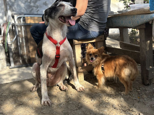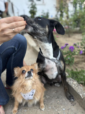 Flora ist ein äußerst zartes Hundemädchen, das aufmerksame und liebevolle Menschen braucht. Sie ist sozial mit Artgenossen sowie mit Katzen. Für ein Zuhause mit kleinen Kindern ist sie nicht geeignet, da wir befürchten, dass sie sie zu sehr stressen könnten.