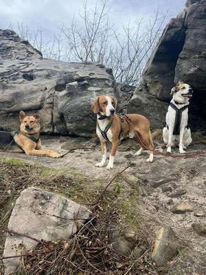 Keisi, ihrem besten Bruder Velebit (Bracke) und Keisi Pflegemutti für drei Tage im Harz. Die Hunde kannten sich nicht, das Ferienhäuschen klein - wir wussten, dass viel hätte schief gehen können.