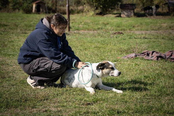 Im Gegensatz zu seinem Freund Muskat, dem das Leben im Tierheim emotional zusetzt, hat sich Azurro langsam, aber sicher hinter den Gitterstäben entfaltet. Der anfangs schüchterne Hund, der sich vorsichtig über die Wiese bewegte, geht heute selbstbewusst und sucht mutig den Kontakt zu Menschen.