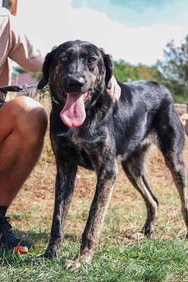 Manchmal reizt ihn die Umgebung im Tierheim – die vielen äußeren Reize und der Lärm – so sehr, dass er, wie es bei Hunden in solchen Situationen oft vorkommt, stärker an der Leine zieht und versucht, überall gleichzeitig hinzukommen. Beim Treffen auf andere Hunde zeigt er manchmal reaktives Verhalten – er stürzt sich bellend auf sie.