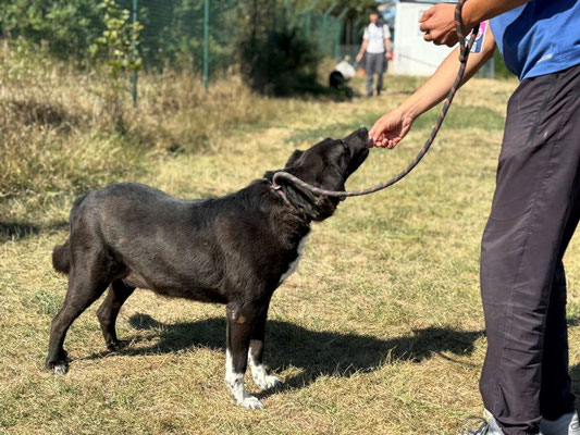 Martin ist der kuscheligste und liebste Hund, der Menschen über alles liebt. Als er 2022 ins Tierheim kam, war er nur noch Haut und Knochen. Doch ohne tägliche Spaziergänge und mit dem minderwertigen Futter im Tierheim wurde er schnell übergewichtig. Damit er vollständig gesund und fit ist, braucht er regelmäßig Bewegung und muss wieder abnehmen. Er läuft perfekt an der Leine und folgt seinem Menschen. Wenn du stehen bleibst, bleibt er auch stehen. Wenn du läufst, läuft er mit. Das ist für Tierheimhunde eher ungewöhnlich. Martin ist aktiv, aber ausgeglichen im Charakter. Die Zeiten, in denen er nach etwas gesucht hat, um darauf herum zu kauen oder es zu zerstören, sind längst vorbei. Jetzt ist er im mittleren Alter, in der Blüte seines Lebens, und das Einzige, was er braucht, ist Liebe und Aufmerksamkeit von Menschen.