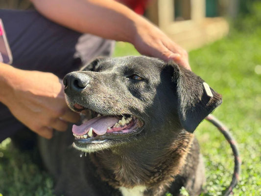 Martin ist sozial mit Hunden. Er lebt in einem Gemeinschaftszwinger mit drei weiteren Hunden. Er hat auch schon in verschiedenen Zwingern mit unterschiedlichen Hunden gelebt. Er versteht sich mit ihnen, aber er mag es nicht, wenn ein anderer Hund dazwischen kommt, wenn sein Mensch ihn gerade streichelt. Dann knurrt und bellt er aus Eifersucht, zeigt jedoch niemals Aggression, indem er angreift. Im Allgemeinen ist er nicht an Spielen mit Artgenossen interessiert. Das, was ihn interessiert, ist der Mensch – und wenn er gestreichelt werden kann, ist das für ihn perfekt. Wenn die Menschen Erfahrung mit der Vergesellschaftung von zwei Hunden haben, dann eignet er sich auch als Zweithund. Das Eifersuchtsthema muss hier natürlich beachtet werden. Im Allgemeinen ist er aber sehr einfach zu händeln, daher könnten wir ihn uns auch bei Anfängern vorstellen. Hier müsste lediglich auf die Eifersucht beim Streicheln geachtet und trainiert werden. Es wäre sehr traurig, wenn so ein liebevolles Wesen hinter Gittern verkümmern würde, während er sich nach Zuwendung sehnt.
