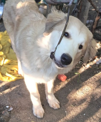 Fremde Menschen werden erstmal ignoriert, es gibt ja auch wichtigeres zu tun. Welpentypisch ist er sehr neugierig, tollpatschig und verspielt. Da Hape sehr wahrscheinlich ein Herdenschutzhundmischling ist, suchen wir ein ländliches Zuhause für ihn bei Menschen, die sich bewusst sind, was auf sie zukommen kann.