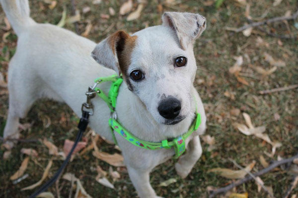 Lily sieht einem Jack Russell sehr ähnlich. Sowohl äußerlich als auch charakterlich. Verspielt und sehr lebhaft. Voller Energie. Sie liebt die Gesellschaft von anderen Hunden. Sie