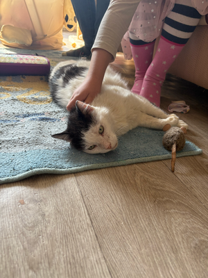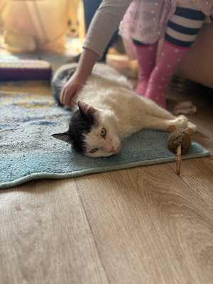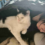 Hier kommt Bianco, ein Kater, der eines Tages einfach in der Katzenkolonie kastrierter Katzen aufgetaucht ist, die ich füttere, und beschlossen hat, zu bleiben. Er hat sich als Hauskatze verhalten, aber ich habe ihn kastrieren lassen und ihn zur Kolinie zurückgebracht. Er lebte 6 Monate als streunende Katze, bevor er herausfand, wo ich wohne, und anfing, vor meinem Haus auf mich zu warten. Das Schlimmste war, dass er mitten auf der Straße schlief, wo Autos vorbeifuhren. Deshalb musste er dringend von der Straße... Ich nahm ihn mit und wir gingen zum Tierarzt für die üblichen Tests... Sie zeigten, dass der Test auf FIV positiv und auf FelV negativ war. Auch Biancos Zähne waren in schlechtem Zustand und einige mussten gezogen werden. Er ist eine junge Katze, ca. 2 Jahre alt, aber eine sehr große Katze... er wiegt 7 Kilogramm. Auf der Pflegestelle lebt er mit zwei anderen Katzen zusammen, mit denen er sich aber nicht versteht, deshalb muss er allein in einem separaten Raum eingesperrt werden. Bianco würde sich überall wohlfühlen, in einem Haus mit Garten oder in einer Wohnung. Wir suchen für ihn ein Zuhause ohne andere Katzen und kleine Kinder, da ihn das Leben auf der Straße vorsichtig werden lassen hat. Als Charakter ist er ein sehr verschmuster und ruhiger Kater. Er mag und lässt sich gerne streicheln und hält sich eng an seine Pflegemutter. Da er aufgrund der anderen Katzen alleine im einem Zimmer ist, fühlt er sich sehr einsam und sucht Besitzer die ihn für immer lieben.