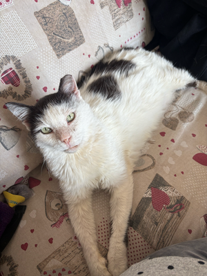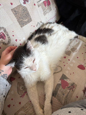 Bianco musste aus der Pflegefamilie, in der er fast zwei Jahre lang lebte, umgesiedelt werden. Seine Pflegemutter starb plötzlich und er musste zusammen mit Andrea & Bella, Aylin und mit den anderen 8 Pflegekatzen in mein Katzenhaus gebracht werden. Ihm fehlt die menschliche Gesellschaft sehr, und wenn ich zum Putzen gehe, kommt er sofort, um mich zu streicheln. Er könnte entweder allein oder in Begleitung einer anderen ruhigen und faulen Katze wie ihm adoptiert werden. Die kleinen und verspielten Kätzchen gehen ihm auf die Nerven und er gibt ihnen eine Ohrfeige. Ich hoffe wirklich, dass sich jemand auf diesen sanften Riesen einlässt... Er wäre eine tolle Gesellschaft für einen Rentner oder jemanden, der sich eine kuschelige und ruhige Katze wünscht. Bianco ist nicht launisch und obwohl er keine Zähne hat, kann er Trocken- und Nassfutter fressen. Er schickt neue Fotos und Küsse aus Sofia und hofft, bald ein richtiges Zuhause zu haben
