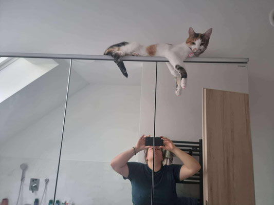 Smith, der Schmuser, ist das genaue Gegenteil: Er liebt es zu kuscheln und liegt gern bei seinen Menschen. Mit seiner verspielten Art jagt er Aya regelmäßig durchs ganze Haus – manchmal etwas zu enthusiastisch. Besonders gerne sitzt er bei der Gießkanne, tippt mit der Pfote hinein und leckt das Wasser ab. Ein richtiger Frechdachs, der in jeden verbotenen Raum will – sich aber auch brav zurückrufen lässt.