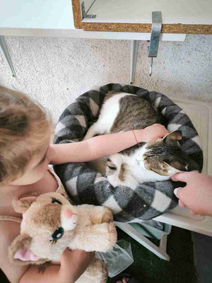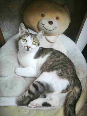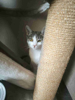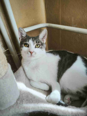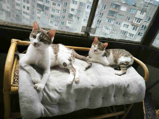 Ich präsentiere euch Santa & Hannah, Chickas Schwestern und Elizas Kinder. Sie wurden ungefähr im Juli 2024 geboren, sind aber seit Februar 2025 bei mir. Vorher lebten sie in der Nähe der Mülltonne und ich habe sie alle aufgenommen. Jetzt sind sie kastriert, geimpft und negativ auf FIV und Felv getestet. Hannah ist charakterlich die mutigere hingegen Santa noch etwas schüchtern ist. Beide sind sehr süß und sanft, sehr verspielt und fühlen sich zueinander hingezogen, daher habe ich beschlossen, sie nicht zu trennen und biete sie als Paar an. Hannah hat einen verstopften Tränenkanal und ein Auge tränt etwas, aber das ist für sie kein Problem. Ich wünsche ihnen in ihrem zukünftigen Zuhause einen sicheren Balkon, da sie dort die meiste Zeit des Tages verbringen. Sie sind auch für Kinder geeignet. Ich liebe diese Katzen wirklich und ich denke, sie können auch dein Herz erobern!